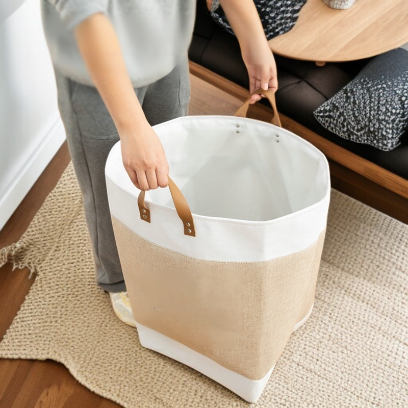 Naturalny kosz z juty do przechowywania, idealny do biura i domu