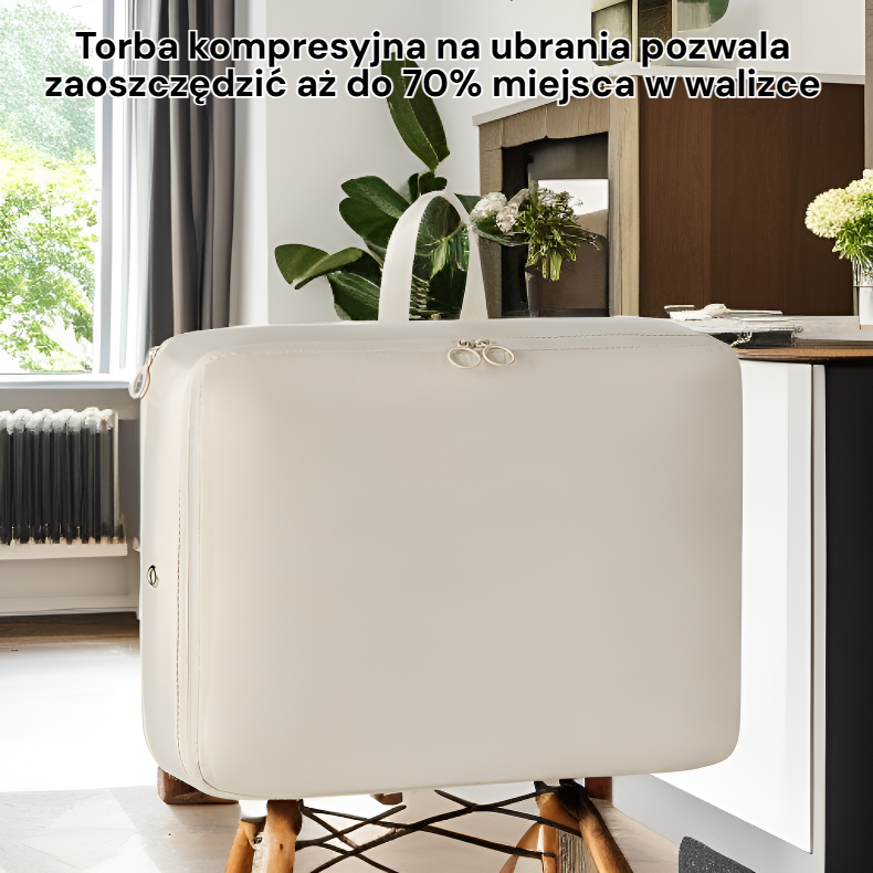 ● Torba kompresyjna na ubrania pozwala zaoszczędzić aż do 70% miejsca w walizce, dzięki czemu możesz zabrać więcej rzeczy na każdą podróż.