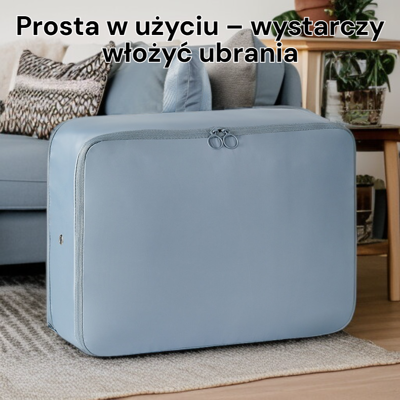 ● Prosta w użyciu – wystarczy włożyć ubrania, zamknąć torbę i wycisnąć powietrze, aby natychmiast zyskać więcej przestrzeni do pakowania.