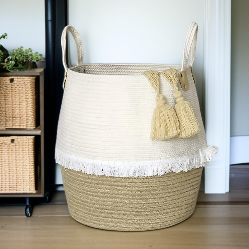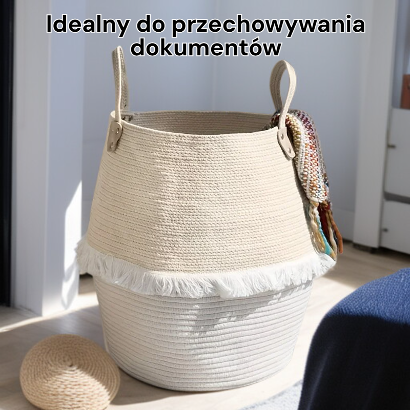 Naturalny kosz z juty do przechowywania, idealny do biura i domu