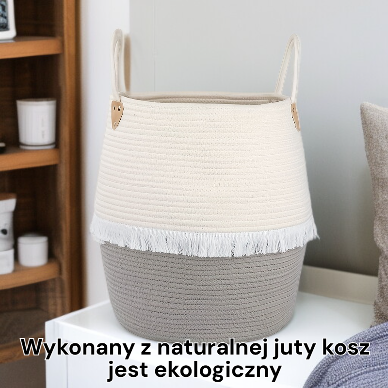● Wykonany z naturalnej juty kosz jest ekologiczny, trwały oraz przyjazny dla środowiska, co sprawia, że doskonale wpisuje się w nowoczesne trendy wnętrzarskie.